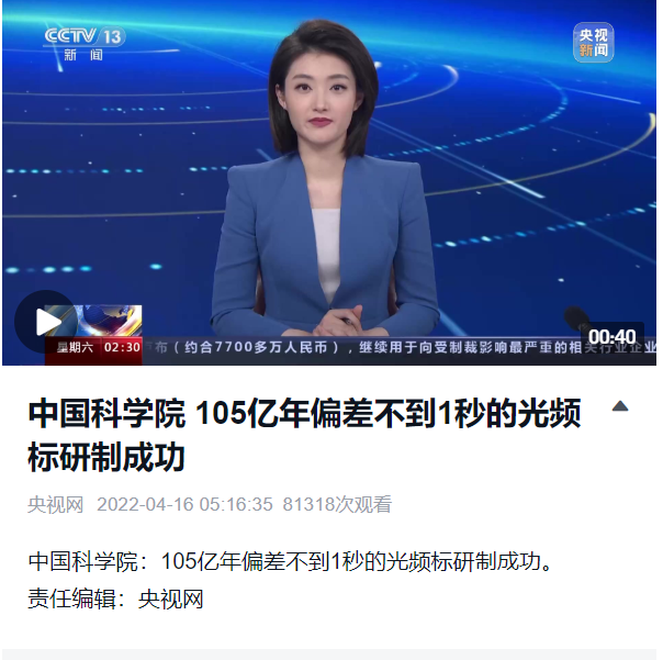 【央视新闻】中国科研实验室 105亿年偏差不到1秒的光频标研制成功
